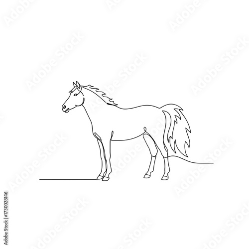 © Elena, Obraz premium Horse outline drawing in minimal line art on white background