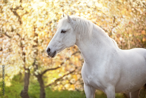 © callipso88, Obraz premium Horse portrait on spring blossom tree