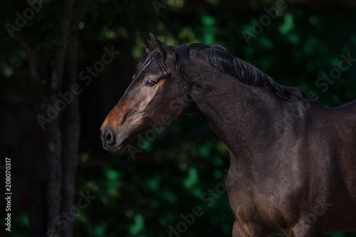 Fototapeta premium Horse portrait on summer landscape outdoor