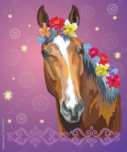 Fototapeta premium Horse portrait with flowers7