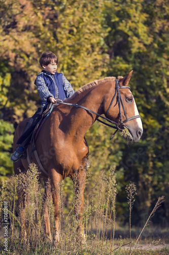 © lester120, Obraz premium horse ride young guy autumn forest