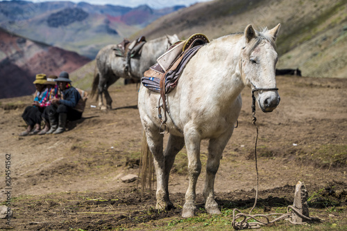 © Peto, Fototapeta premium Horse Riding to Rainbow Mountain Peru and back