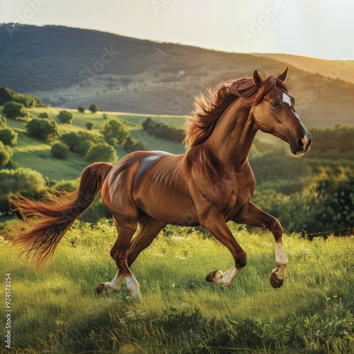 Obraz premium Horse Running in a Meadow