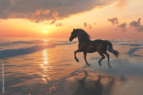 © BanklangArtshop, Fototapeta premium Horse running on beach at sunset.