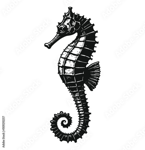 © slowbuzzstudio, Fototapeta premium horse sea engraving black and white outline
