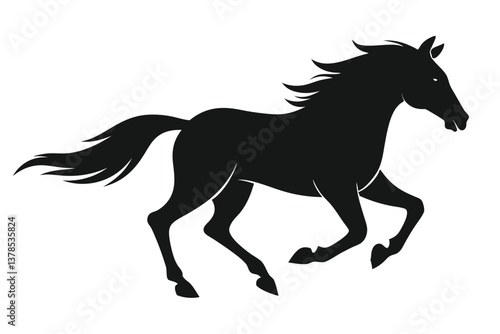 © fatimatz, Fototapeta premium Horse Silhouette Galloping with Mane Flowing on White Background Elegance