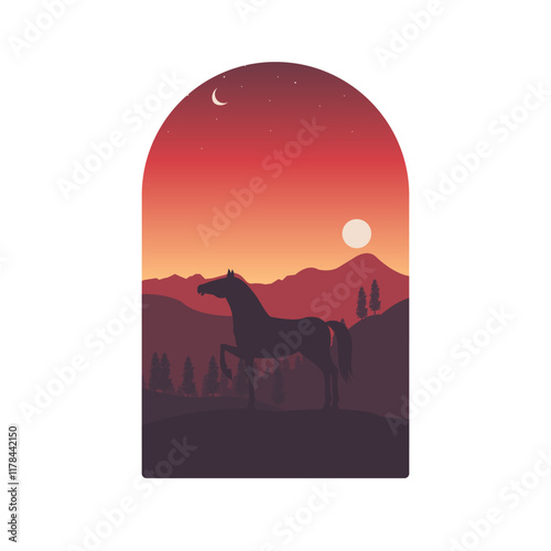 © Hope Finder, Naklejka premium horse silhouette with sunset background masked with window shape