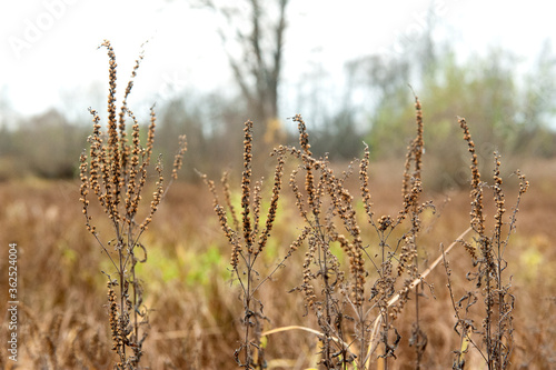 © Оксана Волкова, Fototapeta premium horse sorrel or aveluk close-up. Dry plant, grass in the field.
