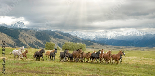 © outdoorsman, Obraz premium Horse stampede in foothills of Montana mountains
