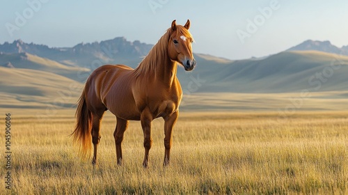 Fototapeta premium Horse standing in Mongolian grassland.