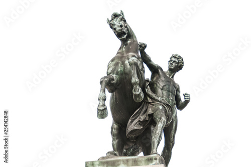 Fototapeta premium Horse tamer statue isolated on white background