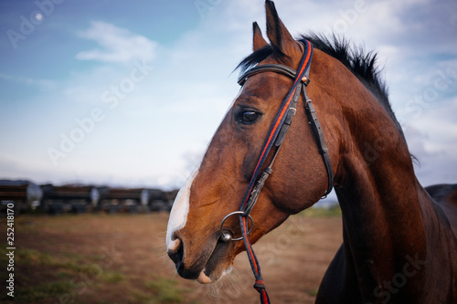 Obraz premium Horse walking near at sand field