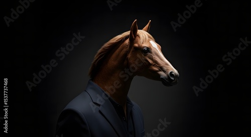 © OmRioRio, Fototapeta premium Horse Wearing Suit on Dark Background
