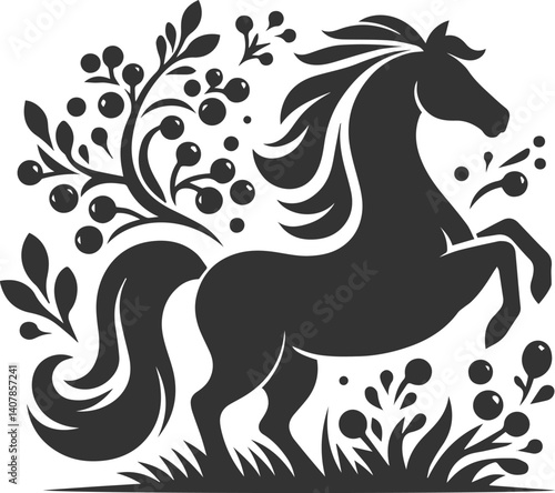 © MDAbdul, Fototapeta premium Horse with tree vector animal silhouette