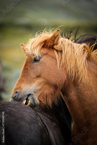 Fototapeta premium Horses biting each others backs in Norway.
