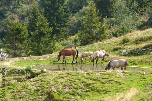 © saccobent, Fototapeta premium Horses drinking in a lake