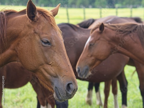 © Aaron, Fototapeta premium Horses gathered together in an open meadow