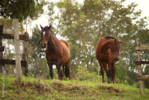 © Alex Soares, Fototapeta premium Horses grazing at dawn near the highway