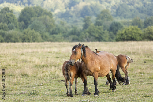 © FRANCISGONSA, Fototapeta premium Horses grazing in summer in Navarra.