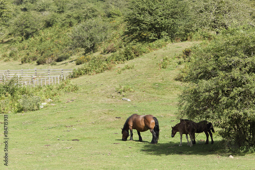 © FRANCISGONSA, Fototapeta premium Horses grazing in summer in Navarra.