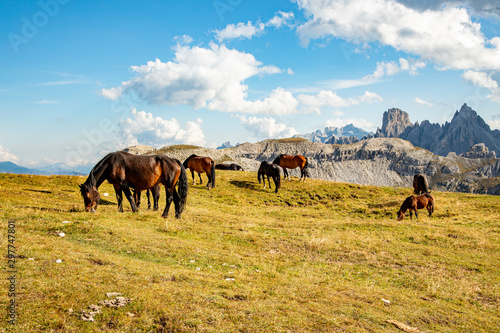 Obraz premium Horses high up in the Dolomites