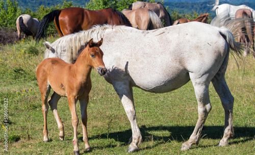© Gerhard, Fototapeta premium Horses in a pasture in Boisoara, Romania