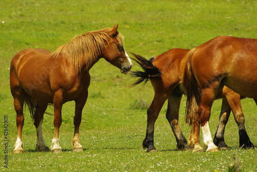 © Enrico Spetrino, Fototapeta premium Horses in freedom on the Gran Sasso plateau in Abruzzo.