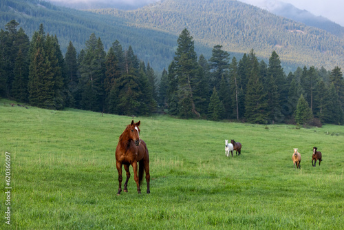 Obraz premium horses in mountain meadow