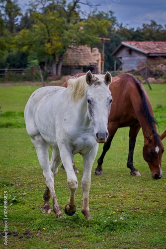 © Vladimra, Fototapeta premium Horses in pens at a ranch