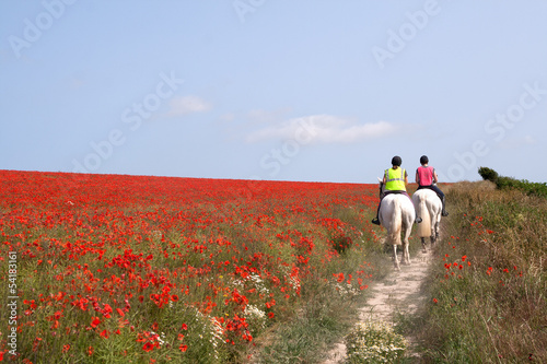 © Sally Wallis, Naklejka premium Horses riding through poppies