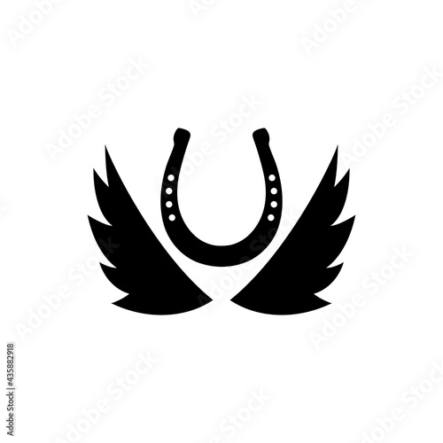 © sljubisa, Naklejka premium Horseshoe with wings icon isolated on white background