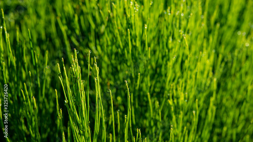 © APHOTOSTUDIO, Obraz premium horsetail stalks in the morning in dew drops.
