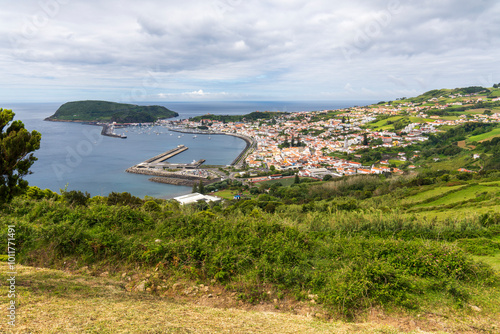 Obraz premium Horta city in Faial island Azores Portugal Aerial view from the Concepcao...