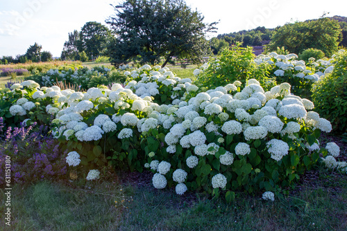 © Monika, Obraz premium Hortensje kwitnące w ogrodzie