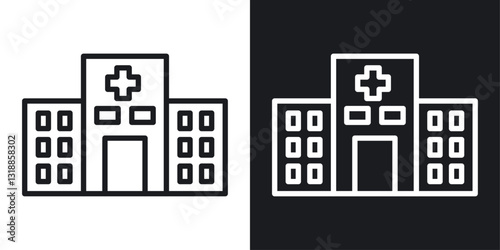 © Abstractor, Obraz premium Hospital building icon set in black and white stroke lines