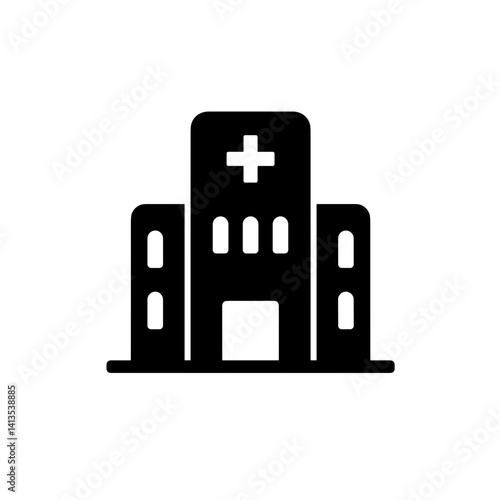 Obraz premium Hospital building silhouette icon in black and white style