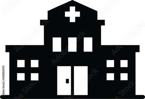 © Smart Craft SVG, Obraz premium Hospital building silhouette vector, Hospital icon symbol