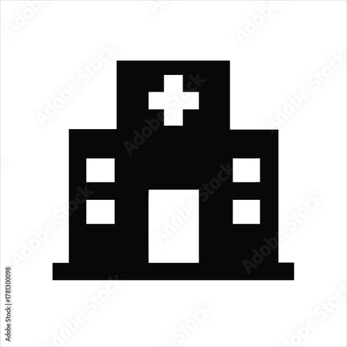Obraz premium Hospital building vector illustration with cross symbol silhouette icon