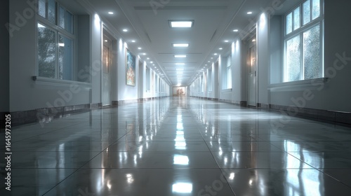 © Sylvia, Fototapeta premium Hospital corridor showcasing modern healthcare design and serene atmosphere
