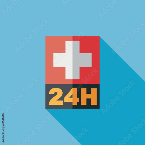 Fototapeta premium Hospitals 24 hours flat icon with long shadow