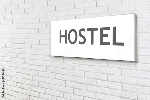 © New Africa, Fototapeta premium HOSTEL sign board on white brick wall