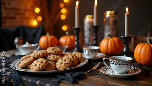 Naklejka premium Hosting a Spooktacular Halloween Tea Party: Themed Decorations, Spooky...