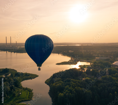 Fototapeta premium Hot Air Balloon Above Lake, Aerial View