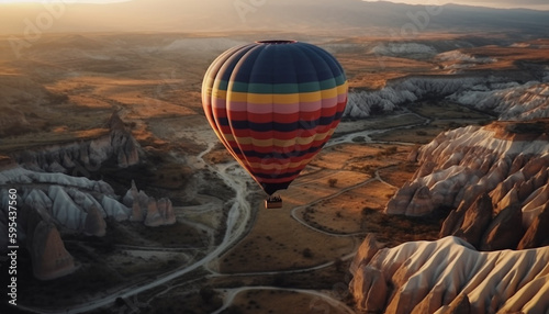 Fototapeta premium Hot air balloon adventure flying over mountains generated by AI