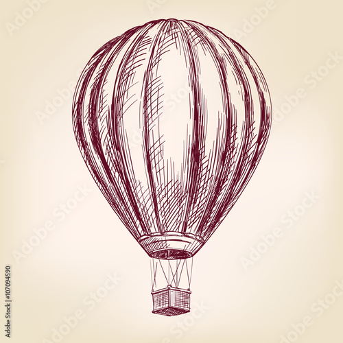 Obraz premium Hot air balloon, airship or transport hand drawn vector illustration realistic sketch