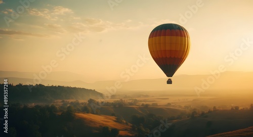 Naklejka premium Hot air balloon, beautiful landscape with hot air balloon flying in the sky...