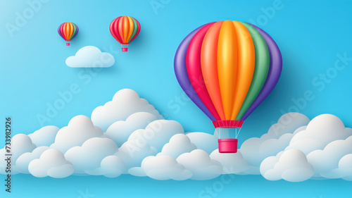 Fototapeta premium hot air balloon, cloud and rainbow blue sky background