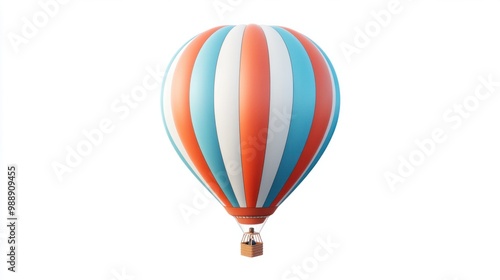 © Napasnan, Naklejka premium Hot air balloon featuring bold diagonal stripes, isolated in mid-flight against white.