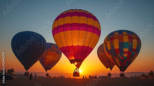 © Graphic Genius, Fototapeta premium Hot air balloon festival at sunset colorful balloons scenic view outdoor experience