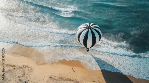 © Zeva, Obraz premium Hot air balloon flight over beach, ocean waves, aerial view, travel